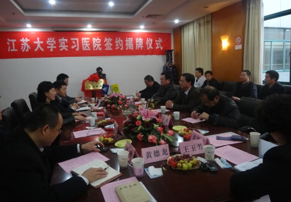 医学部常务副主任郑金旭教授,医学部与临床医学院党委朱立新书记,基础医学与医学技术学院原副院长、调研员姜平教授,张家港市卫生局党委副书记、副局长季春郁,江苏澳洋医药物流有限责任公司执行董事、张家港澳洋医院总经理朱宝元,江苏澳洋医药物流有限责任公司投资总监高峥,张家港澳洋医院常务副总经理、名誉院长薛元坤,常务副院长高家彦,党支部书记王玉芳以及医院有关临床科室、教研室负责人出席了签字与揭牌仪式。