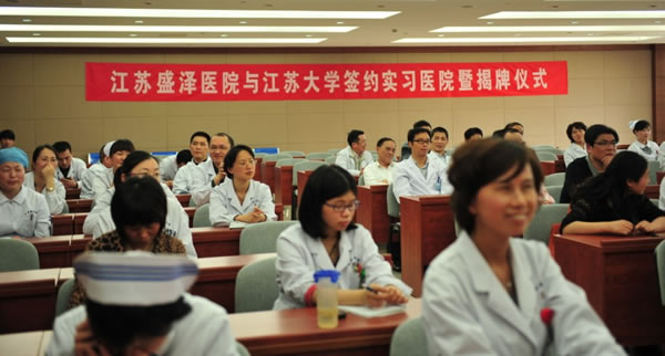 讲话并签约。医学部与临床医学院党委书记朱立新与盛泽医院胡寅副院长共同揭牌。仪式由盛泽医院副院长吕林荣主持。