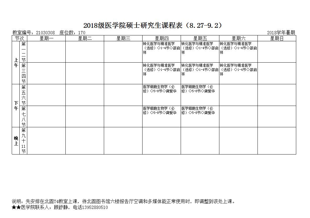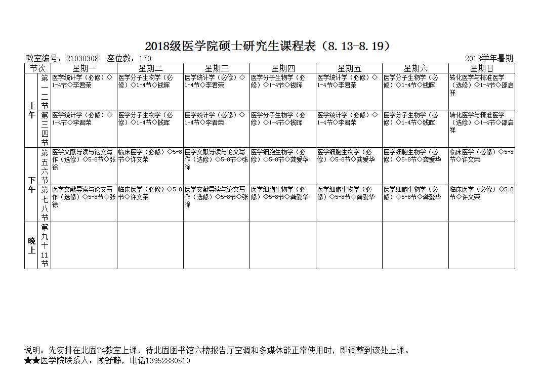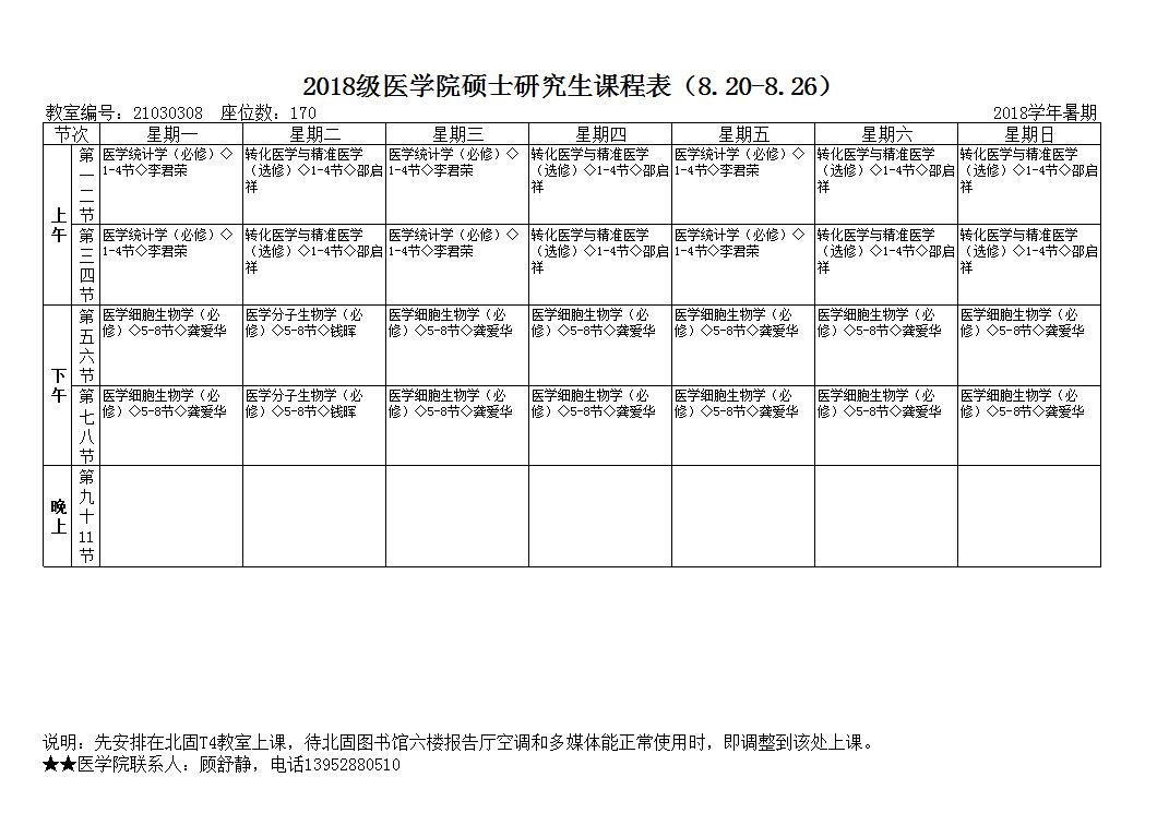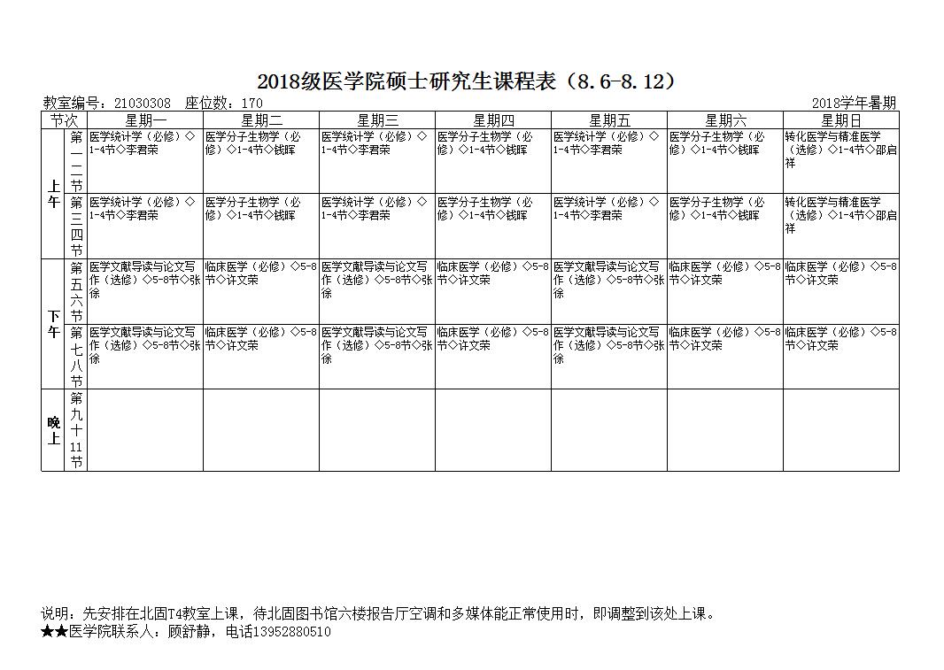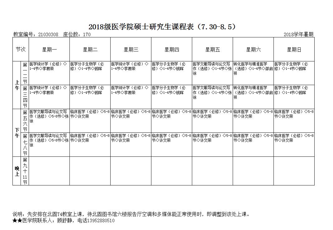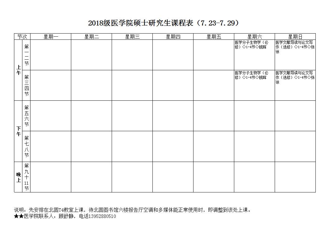 成人漫画 2018级医学院硕士生2018年7月23日至9月2日课程表