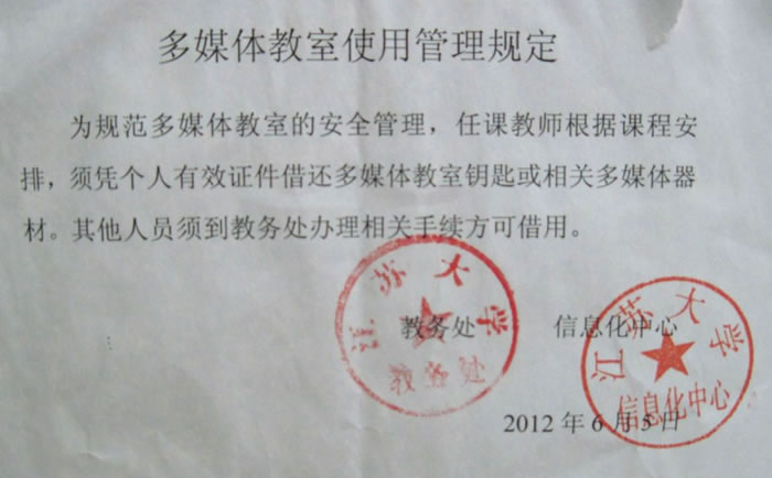 教务处、信息化中心关于《多媒体教室使用管理规定》