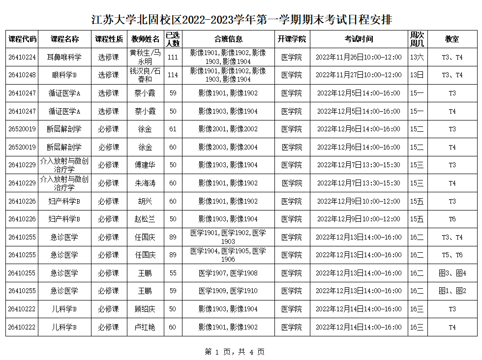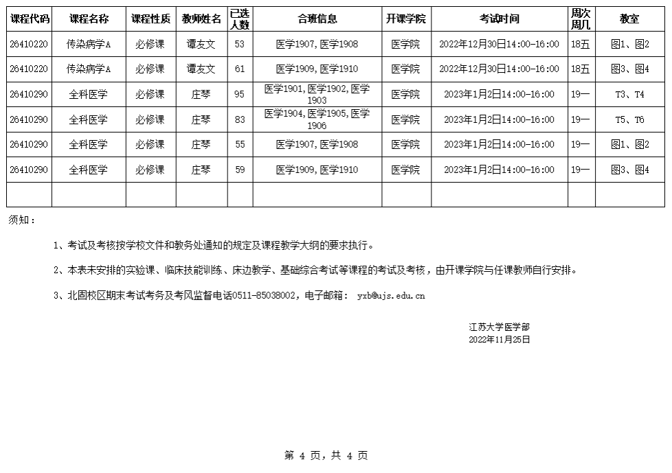 成人漫画 北固校区2022-2023学年第一学期期末考试日程安排