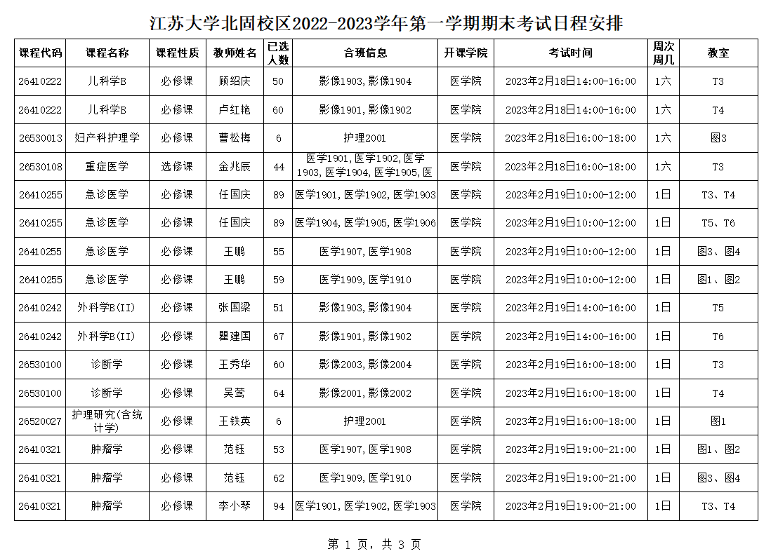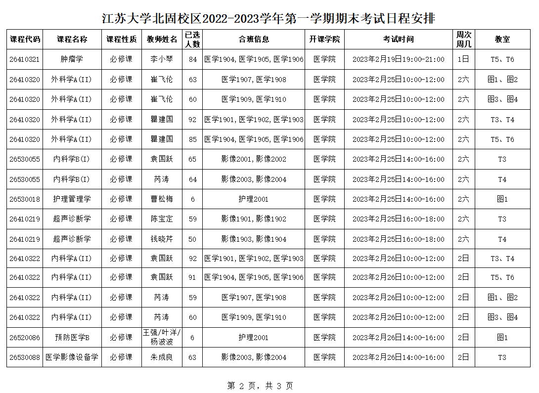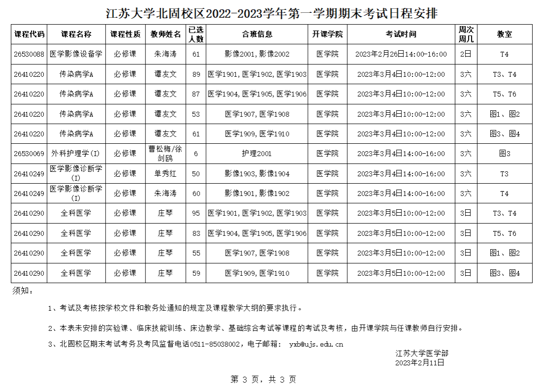 成人漫画 北固校区2022-2023学年第一学期期末考试日程安排(2.11)