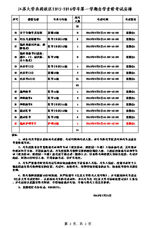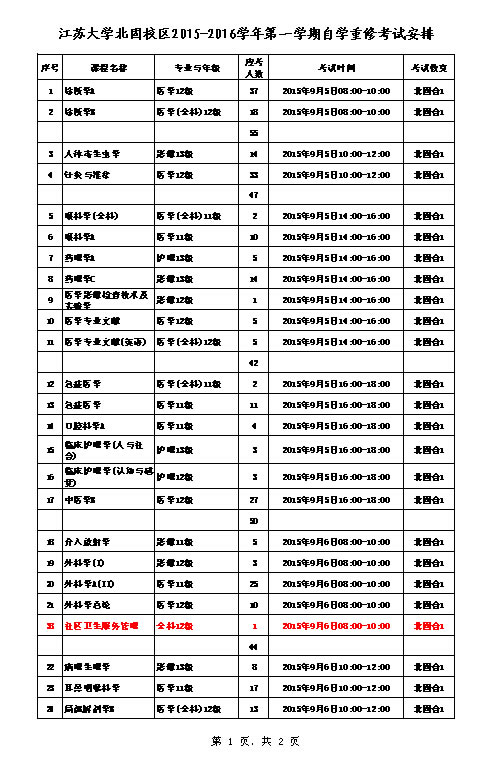 教务处-北固校区2015-2016学年第一学期自学重修考试安排.xls