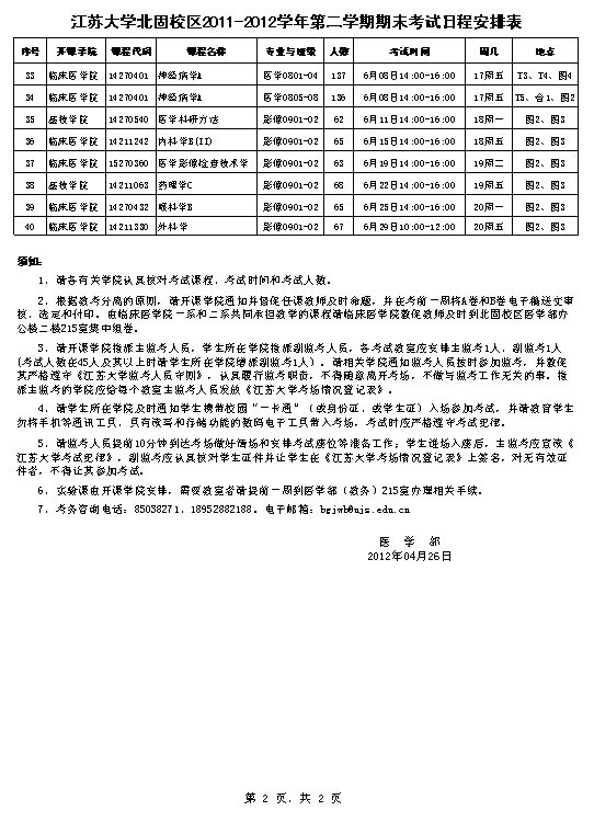 北固校区2011-2012-2期末考试安排表20120426.xls