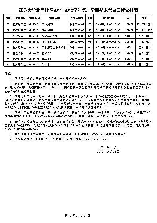 北固校区2011-2012-2期末考试安排表20120426.xls