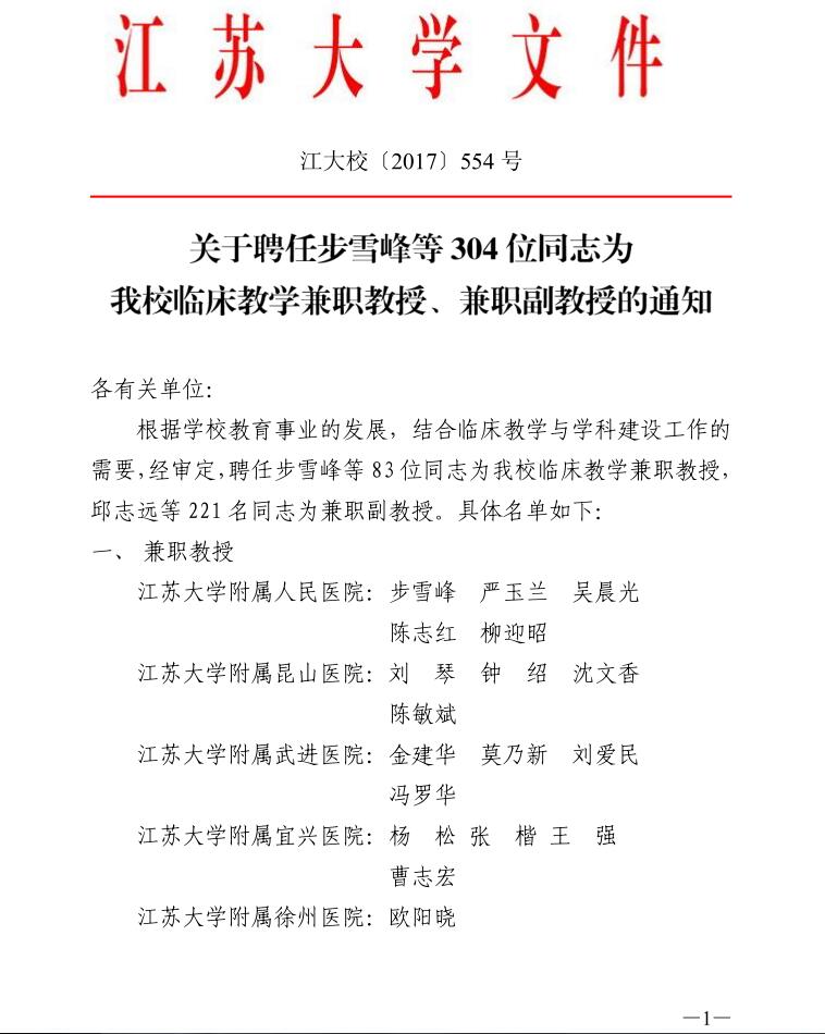 关于聘任步雪峰等304位同志为成人漫画 临床教学兼职教授、兼职副教授的通知