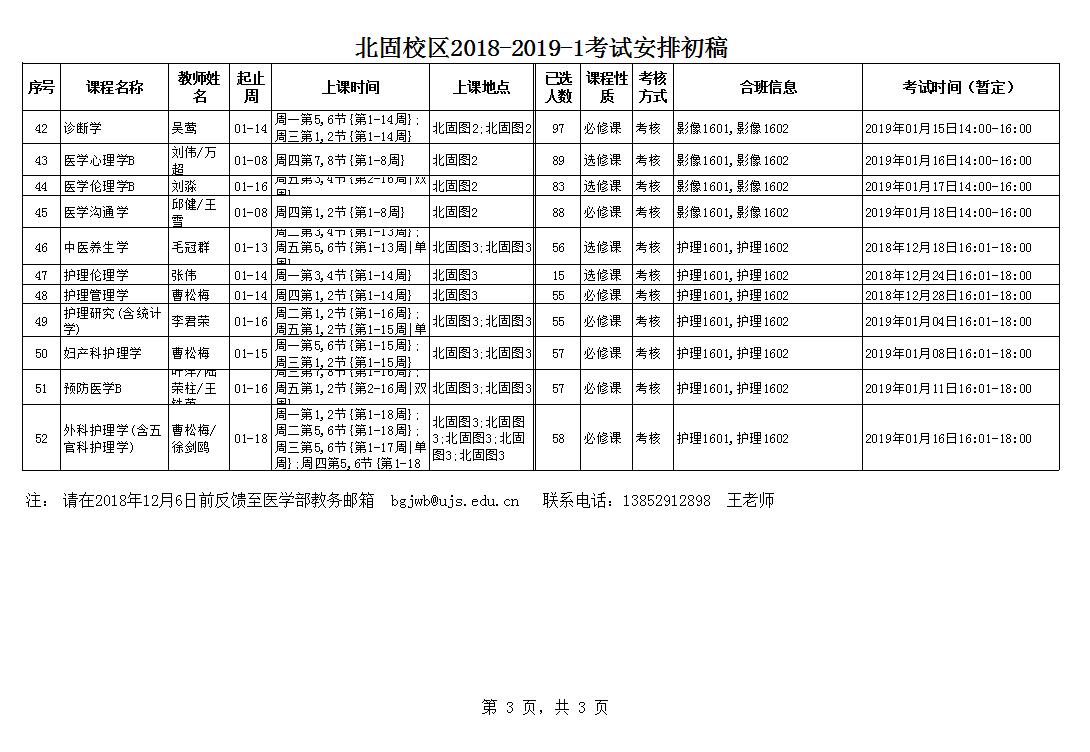 北固校区2018-2019-1考试安排初稿20181129