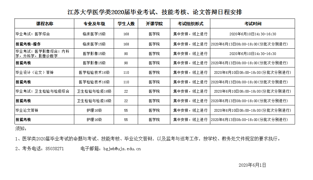成人漫画 医学类2020届毕业考试日程安排