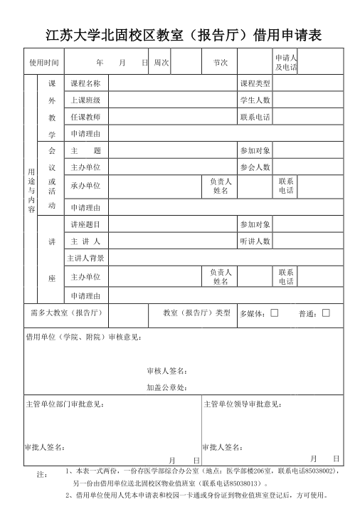 成人漫画 北固校区教室(报告厅)借用申请表